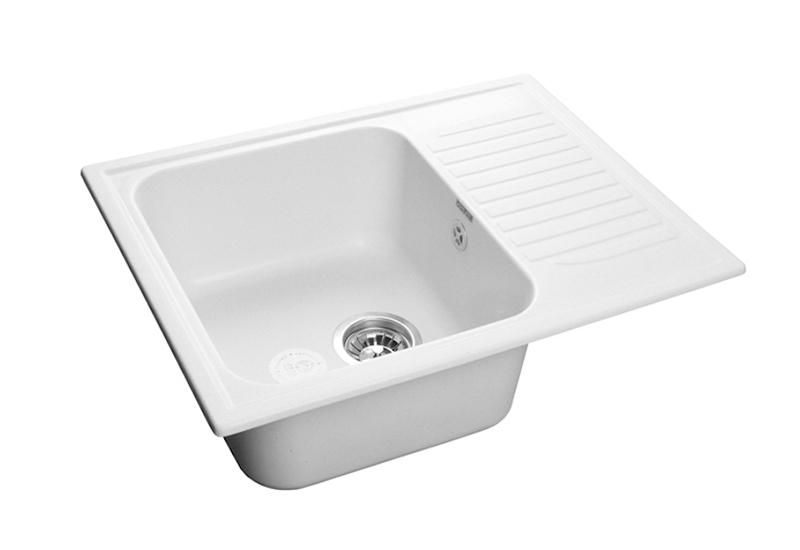 Мойка GranFest мрамор GF-S--645L чаша (ЛЕВАЯ) с крылом 645*498 мм (белый) +Сифон одинарный