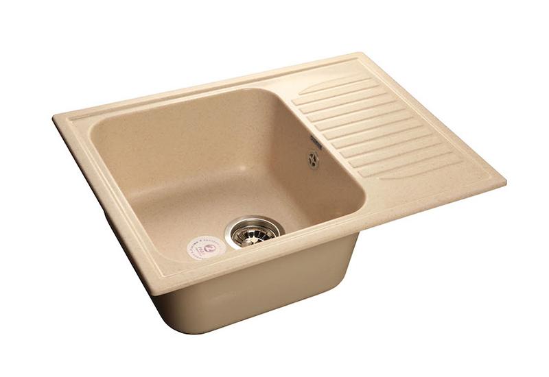 Мойка GranFest мрамор GF-S--645L чаша (ЛЕВАЯ) с крылом 645*498 мм (бежевый) +Сифон одинарный